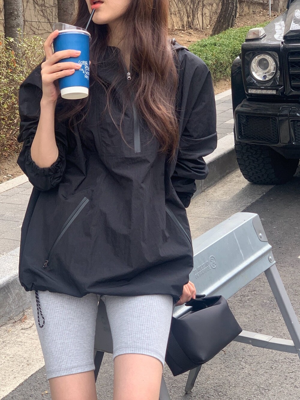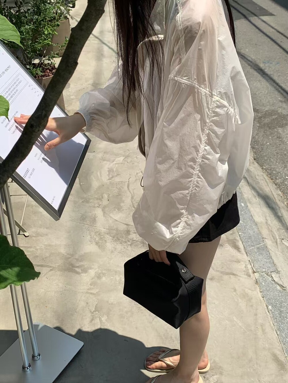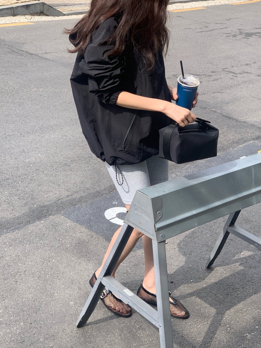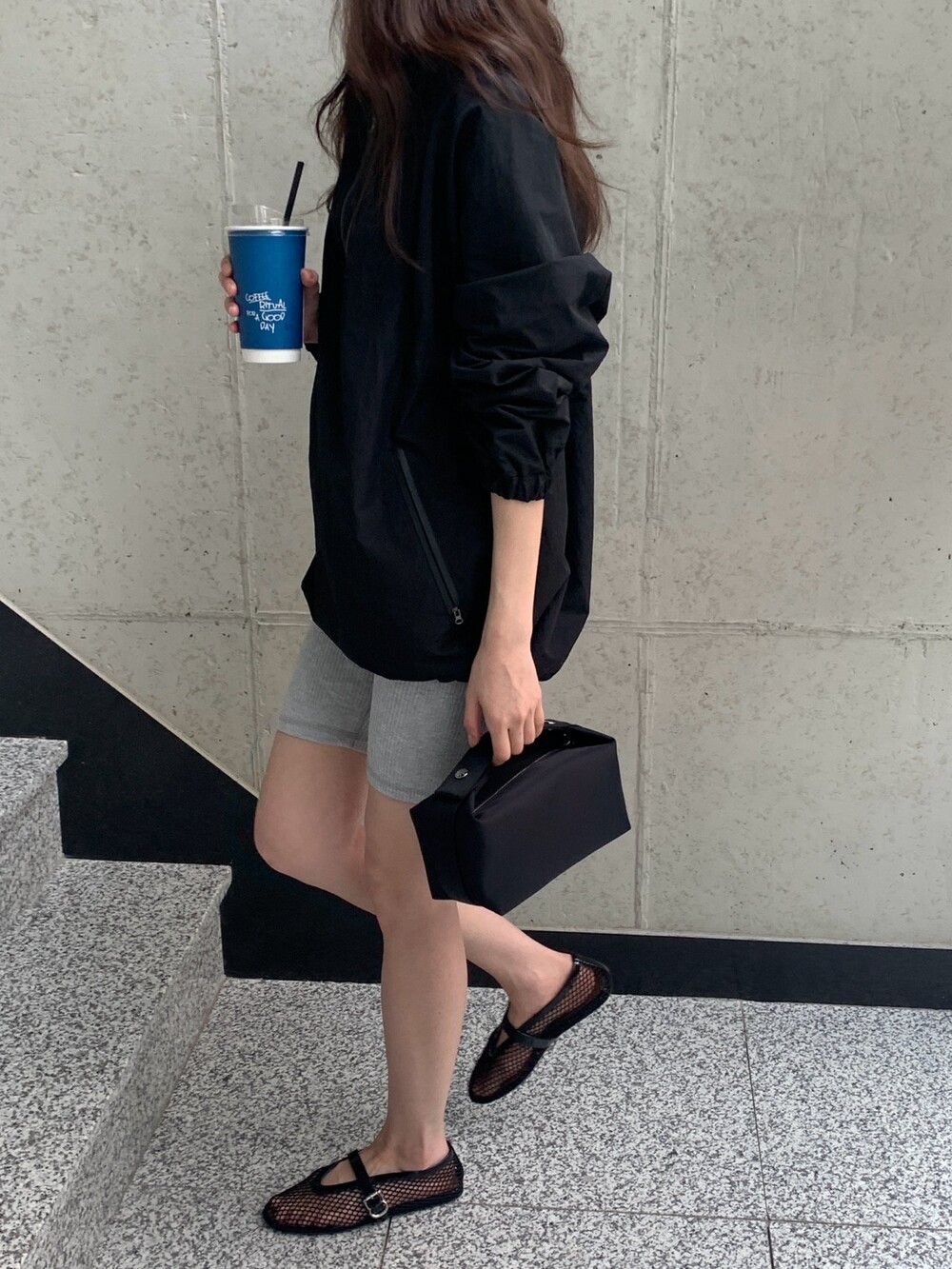 V 지퍼 위 스냅 디테일로 간편한 오픈/클로징